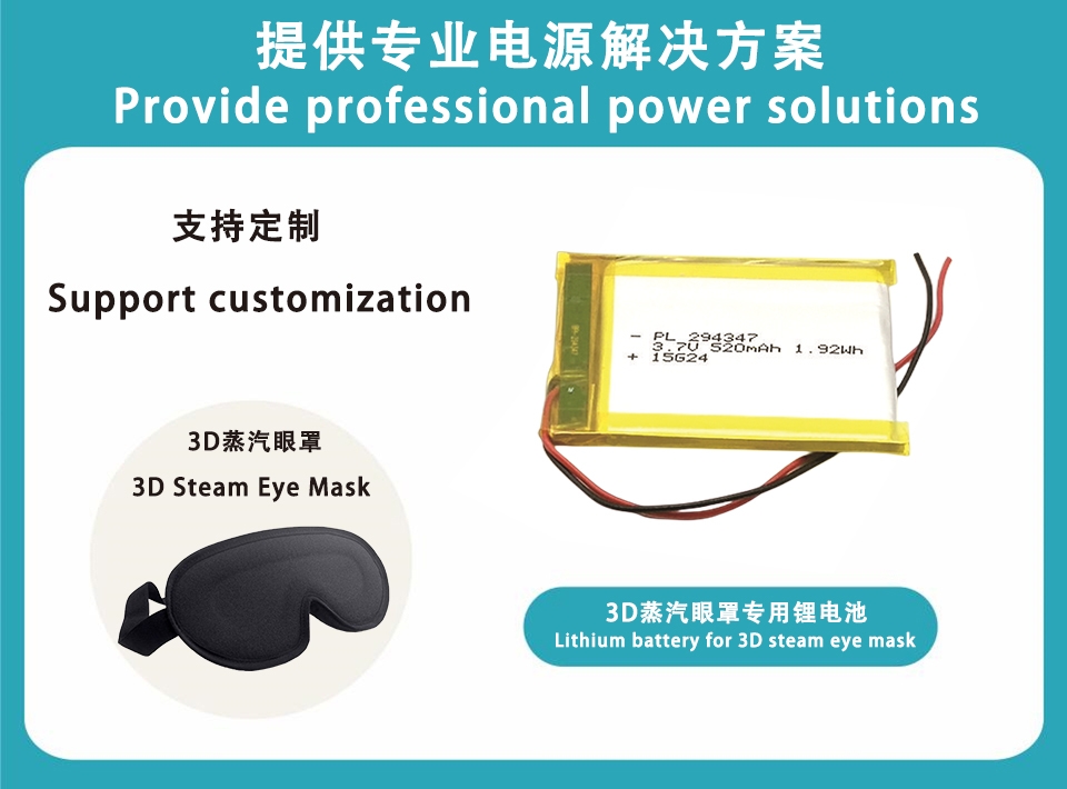 3.7V 3D多功效蒸汽眼罩公用锂电池