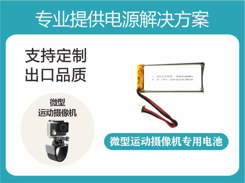 各类摄像仪器的呈现丰硕了人们的糊口,进步了人们的糊口品德,摄像机须要一个比拟不变的、宁静的供电体系,而活动喜好者公用的高端微型活动摄像机与航拍拍照机对电池请求更高,为此,我司特地有针对性的研发了抗震的活动型电池,其详细特色有:电池布局与摄像机融为一体且防摔、电器打仗性好、杰出的充放电机能、超长轮回寿命、高高温机能杰出、具备过充、过放、短路掩护